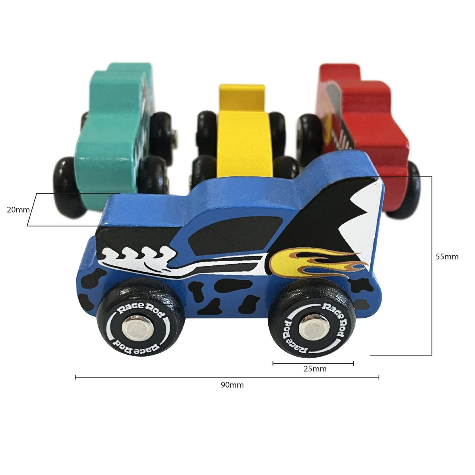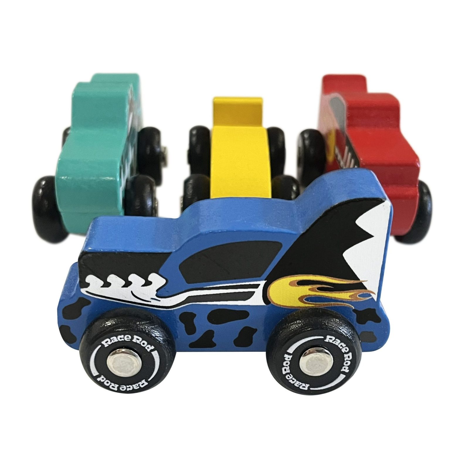 Unleash your need for speed with these Race Rod Cars! Crafted with high-quality wood and vibrant designs, these mini race cars will have you and your friends zooming around for hours of fun.