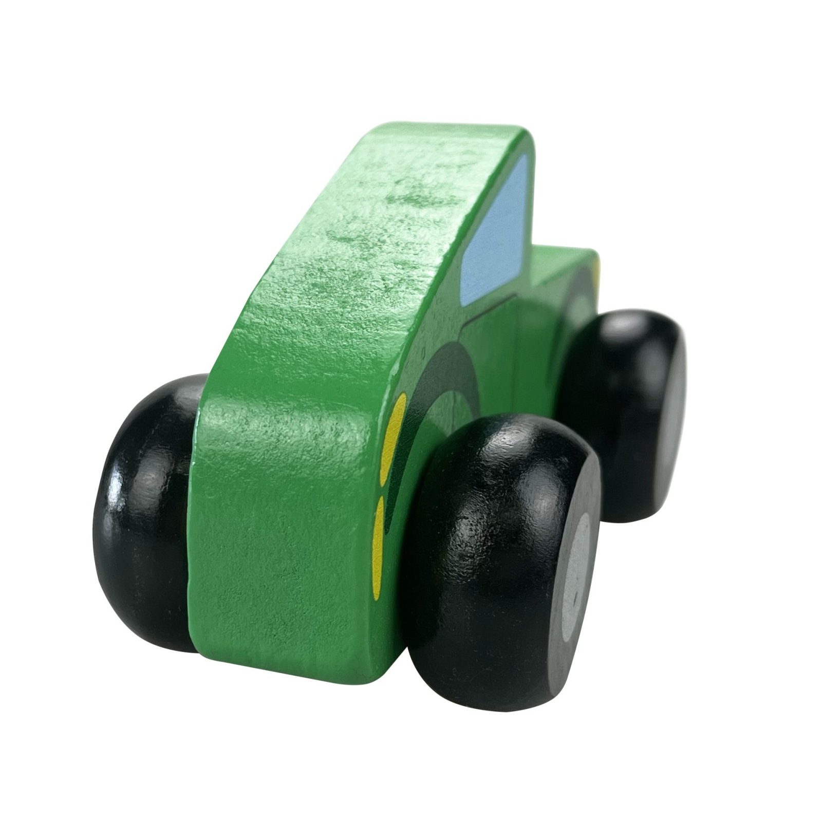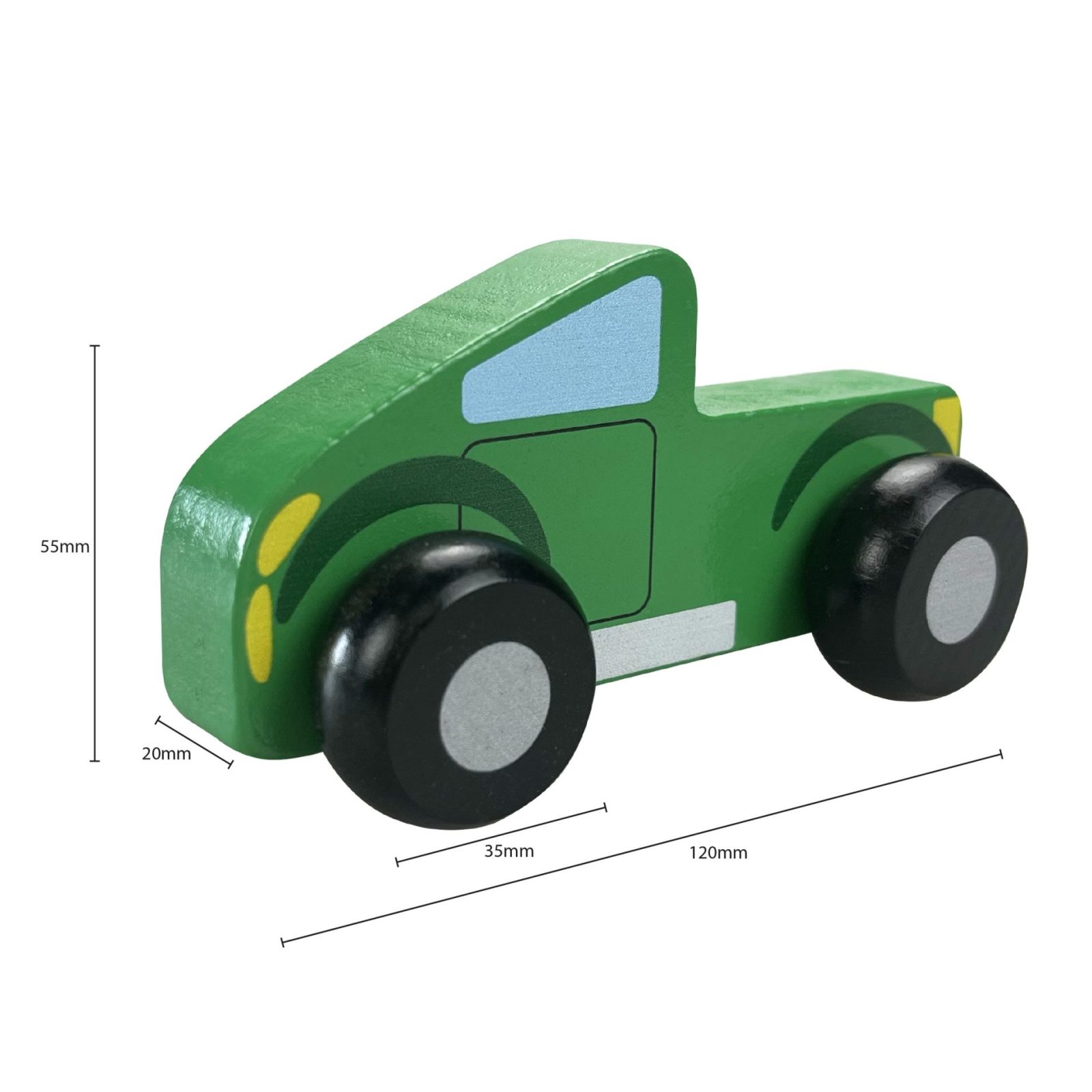 Each vehicle is quality crafted from wood, is hand-painted and contains moving wheels.